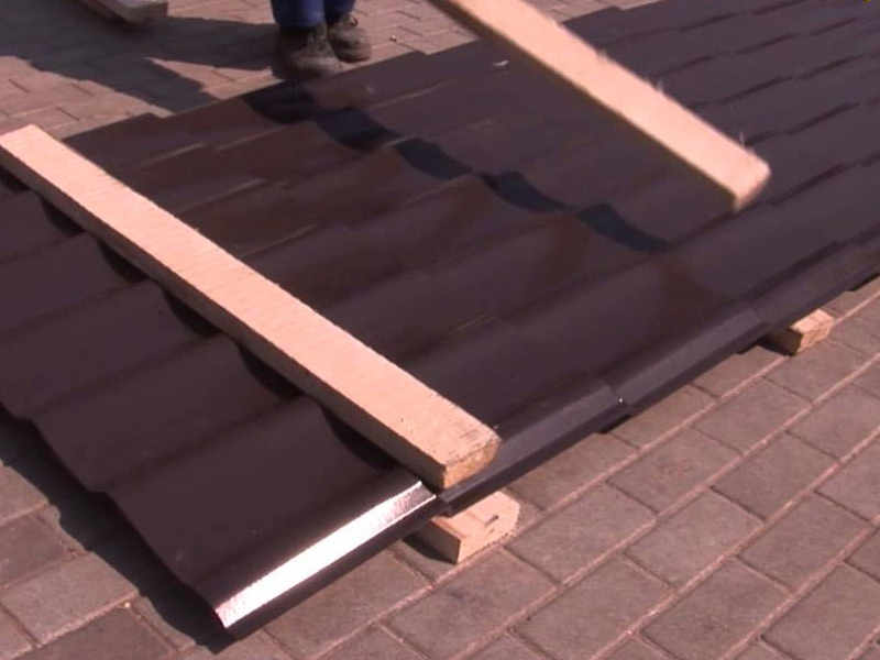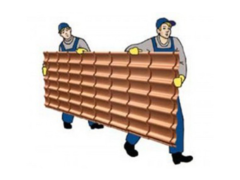 Знімати окремі листи металочерепиці з пачки можна лише з попереднім зміщенням в бік початку листа – це робиться з метою попередження появи сколів на поперечній хвилі, що можуть виникнути, якщо різко підняти лист металочерепиці догори. Лист необхідно переміщувати у вертикальному положенні достатньою кількістю робітників.